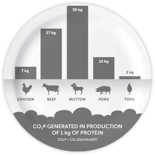 - Animal farming and processing has a tremendous impact on our environment and is one of the leading drivers of climate change. This graphic illustrates just how much land, grain and CO2 is used to get different types of protein on your plate.