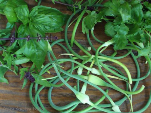 I planted some Thai basil this year, along with my regular Italian basil, so I thought Iād experiment with the herbs, scapes and honey, and this Thai Basil Pesto that I came up with was a hit.